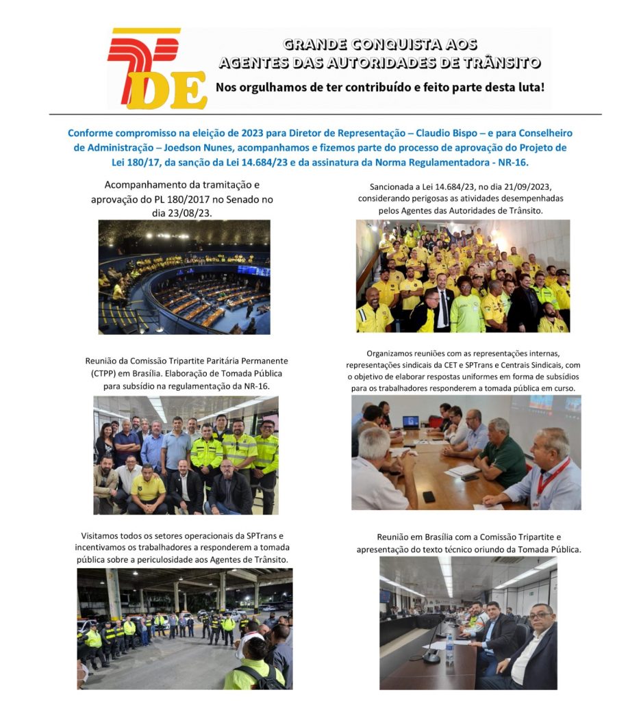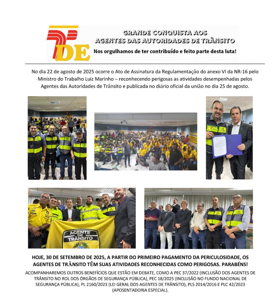 Hoje iniciamos um ciclo de reconhecimento e, por meio da linha do tempo, relembramos a luta que nos levou à aprovação e ao pagamento da NR 16 – Periculosidade para os Agentes de Trânsito.