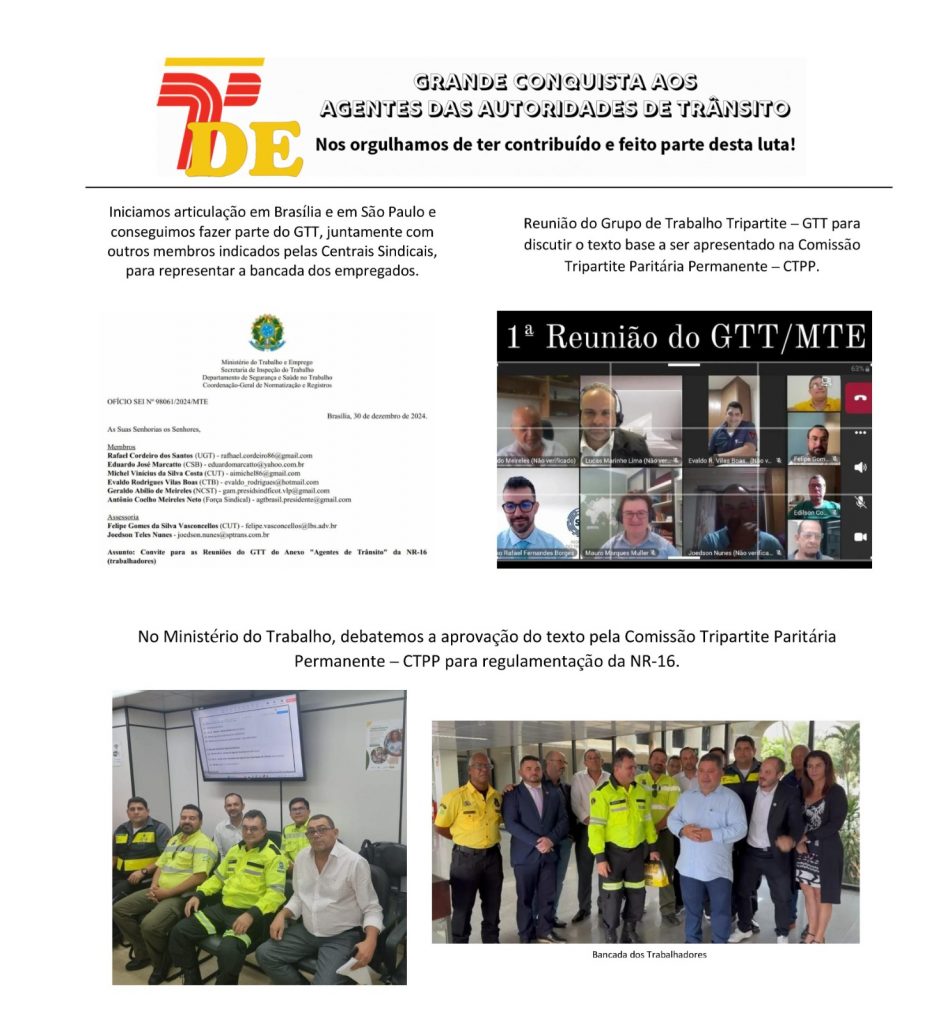 Hoje iniciamos um ciclo de reconhecimento por meio da linha do tempo. Relembramos a trajetória de luta até a conquista da aprovação e do pagamento da NR 16 – Periculosidade para os Agentes de Trânsito.