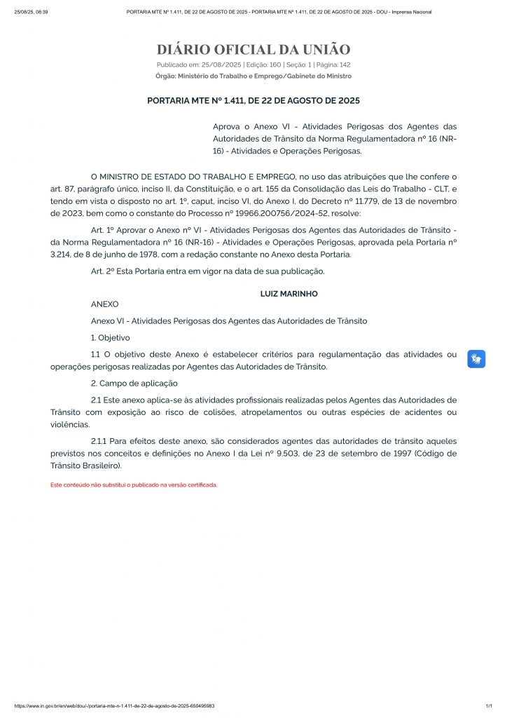 Tivemos a grata satisfação de participar do ato, no dia 22 de agosto de 2025, da assinatura da regulamentação da NR 16 pelo Ministro Luiz Marinho, a qual foi publicada no Diário Oficial da União no dia 25/08, estabelecendo as diretrizes para o pagamento do referido adicional.